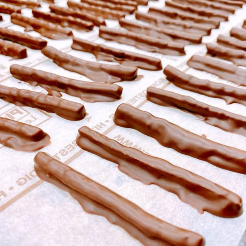 ラム酒の香りをつけたミルクのガナッシュチョコレートを、ヴァローナのミルクチョコレートで包みました。