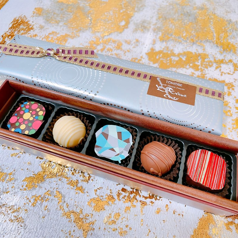 世界のパティシエから愛されるヴァローナ社のチョコレートを使用したくりーむの手作りトリュフチョコレート、5種類を一箱に入れた詰め合わせ。