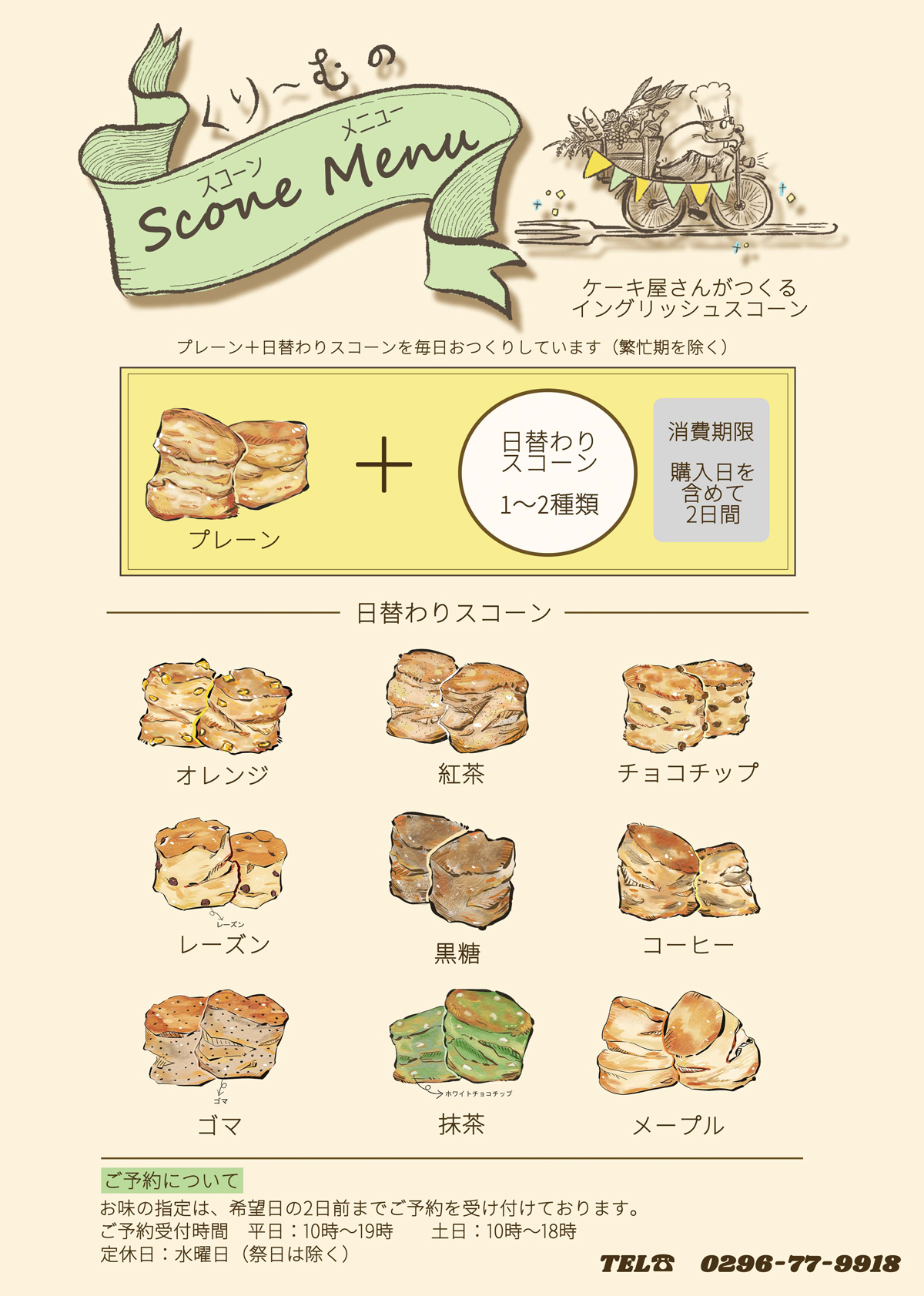 スコーンフェア開催中の詳細については、お知らせ又は店舗までお問い合わせください。